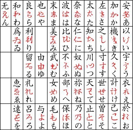 Các âm của tiếng Nhật được thể hiện qua bảng chữ Manyougana (万葉仮名) - là một hệ thống chữ viết cổ sử dụng các ký tự tiếng Hán để diễn đạt tiếng Nhật.